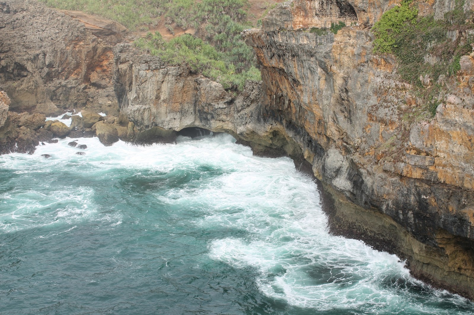 Jika kamu pernah melihat mahakarya Franz, kamu akan melihat kalau pemandangan yang ada dalam lukisan itu tidak berubah. Jejeran tebing karang yang kuat dengan gelombang-gelombang cantik di kanan kirinya, terlihat seakan-akan menantang gelombang Samudra Hindia untuk menghempasnya sekuat mungkin. Luar biasa ganas!